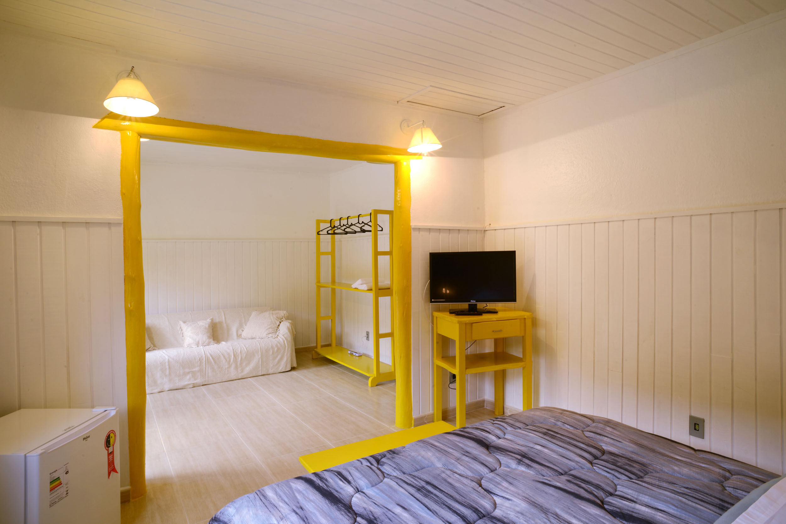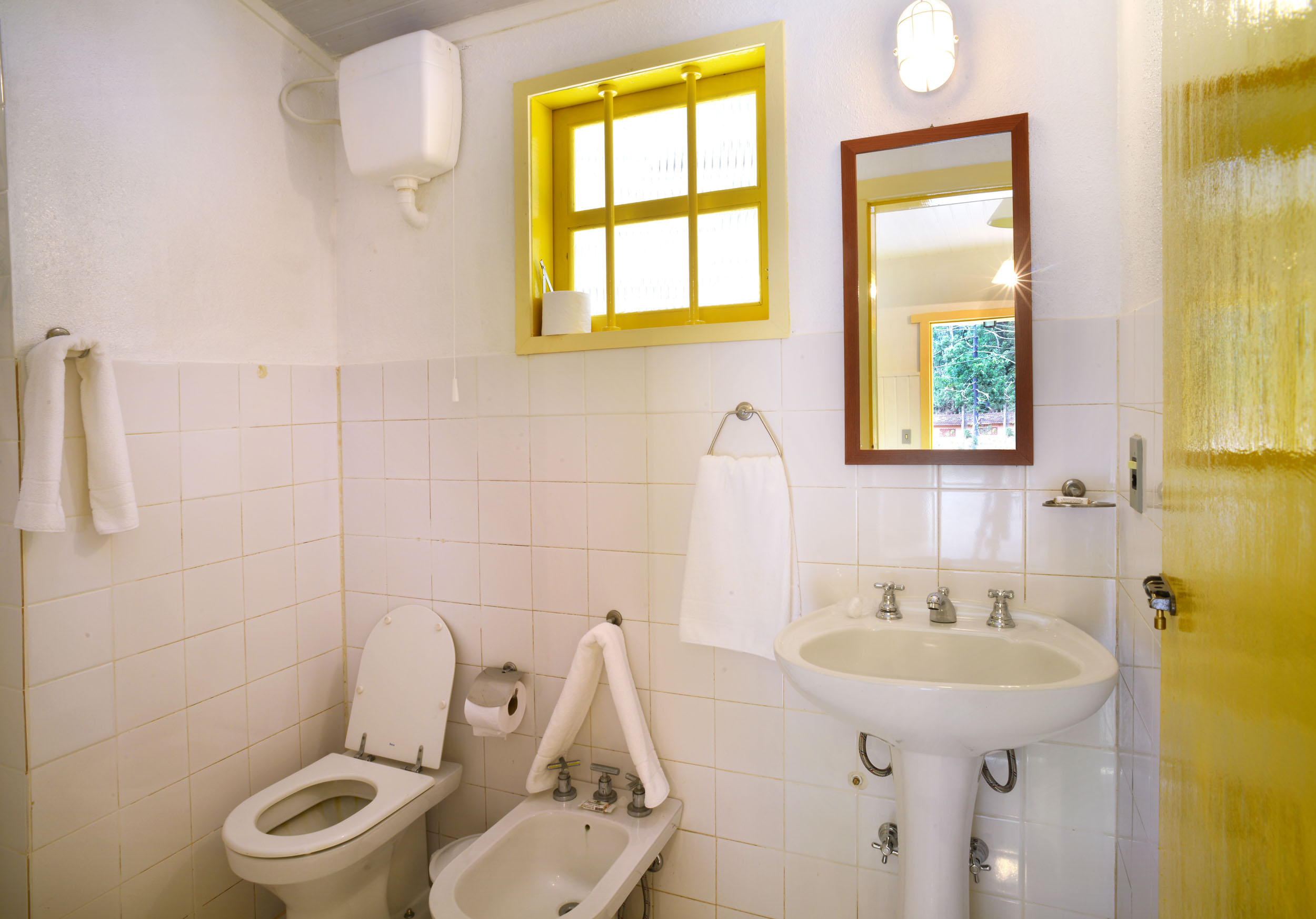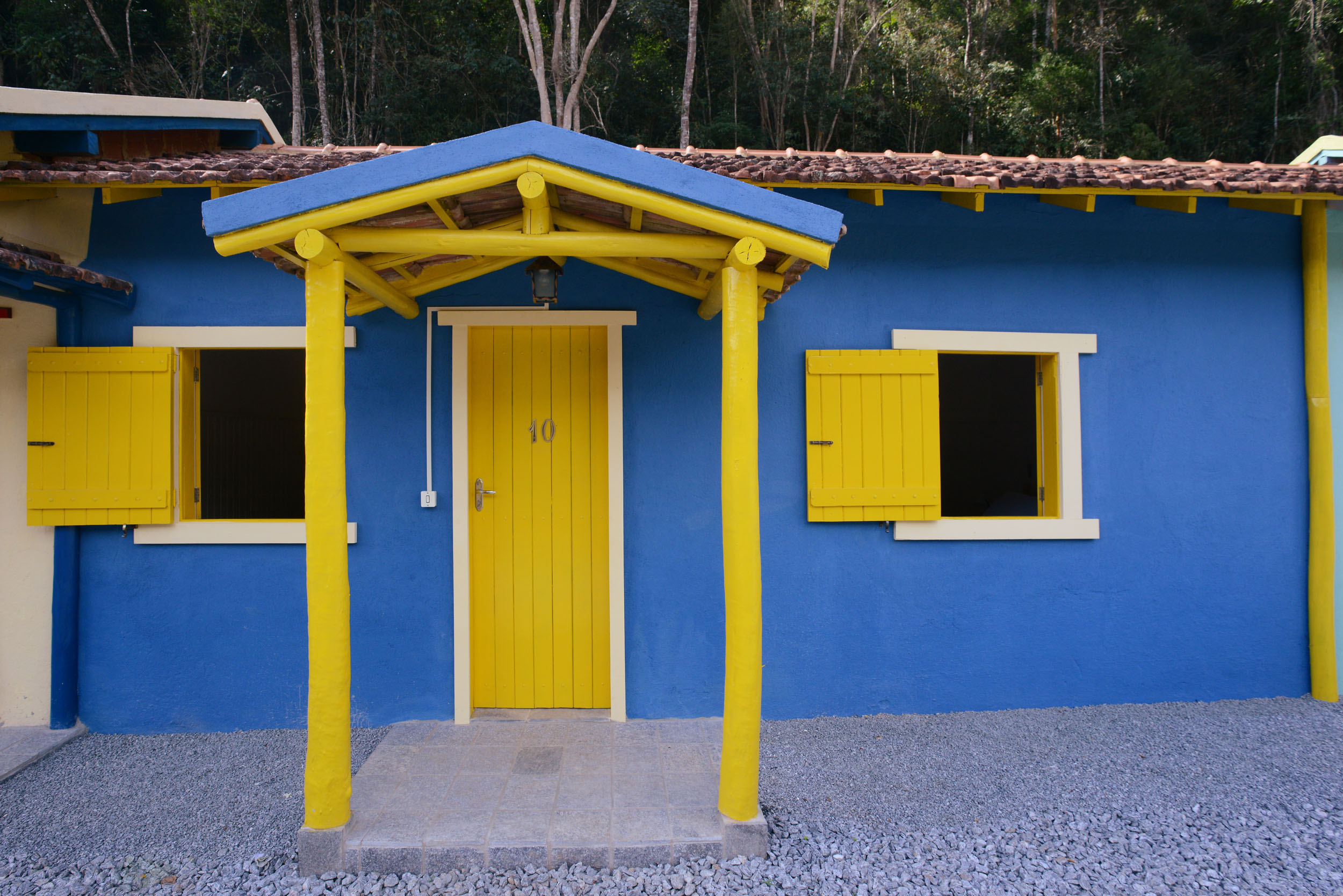 An old cottage used to house the farmers employees was renovated and painted in blue, white and yellow as old Brazilians houses used to be colored. It is spacious and comfortable and offers a large double bed, TV with SKY service (satellite) fridge, electric heather and a nice sofa. The bathroom is supplied with pure water spring locally and heated by electric boiler.