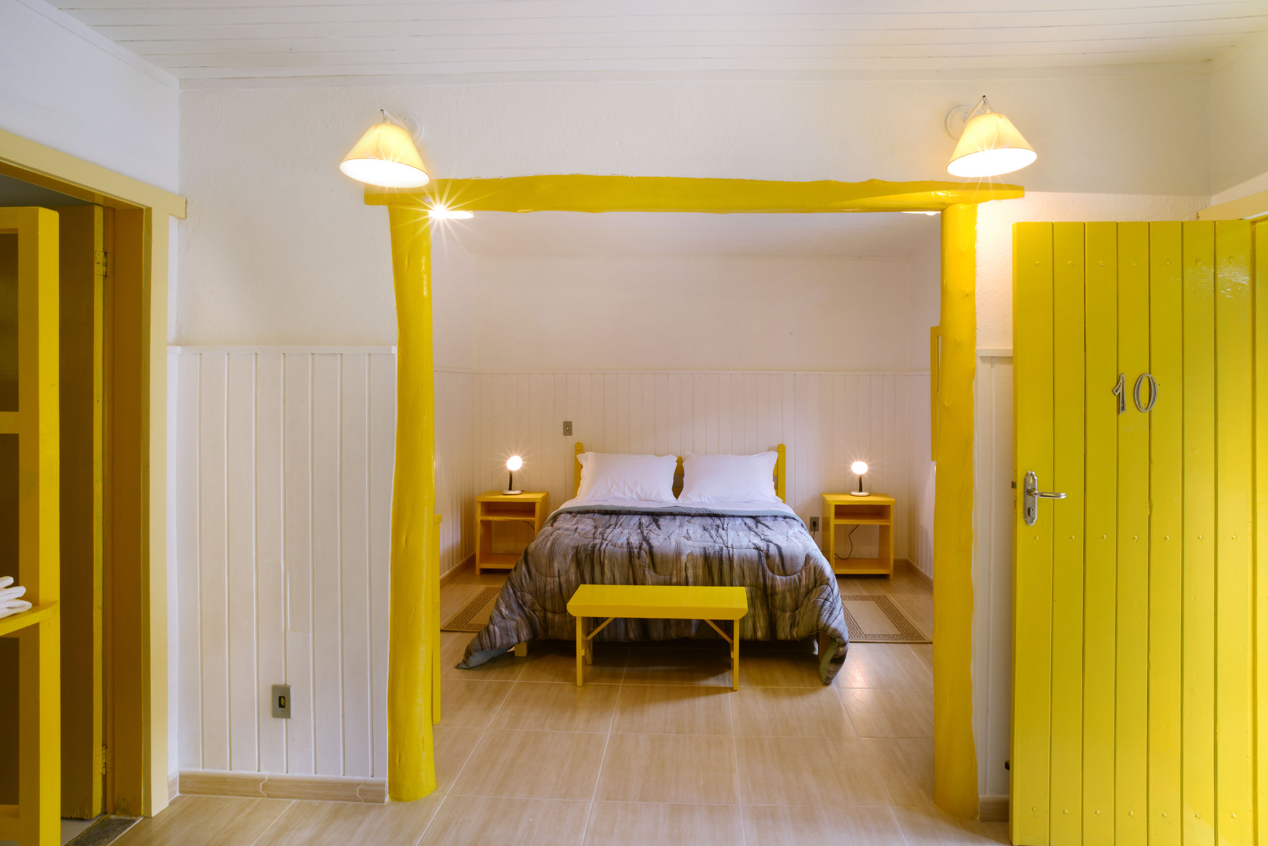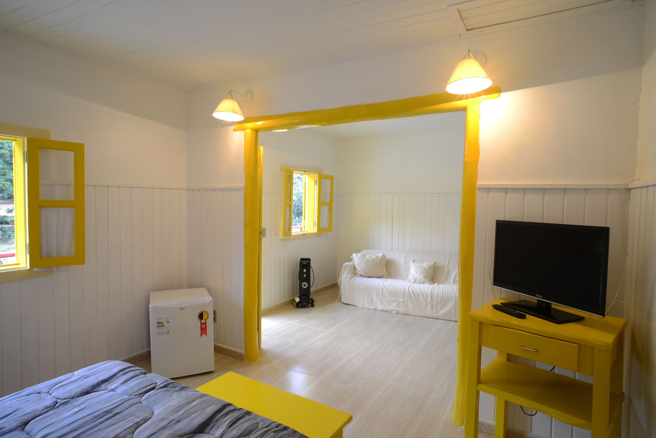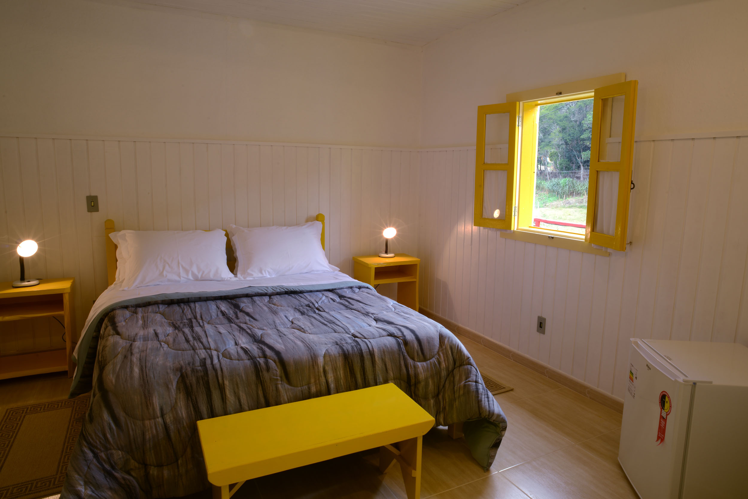 Antiga casa de colono foi transformada num charmoso chalé colorido de azul, branco e amarelo ao estilo das antigas casas brasileiras. É amplo e muito confortável, oferece uma espaçosa cama de casal, frigobar, TV com Sky, aquecedor de ambiente e um grande sofá. O banheiro é abastecido com a água puríssima que nasce na propriedade, aquecida por boiler elétrico.