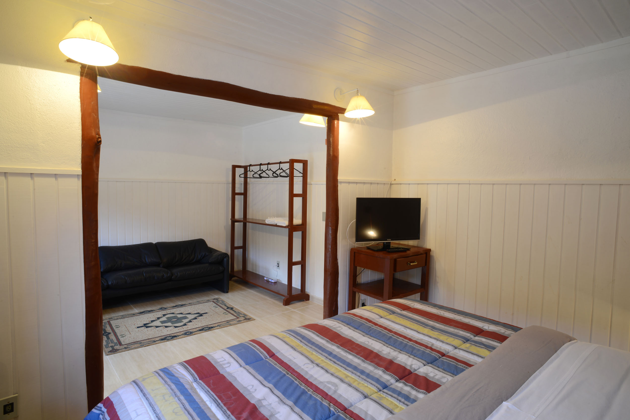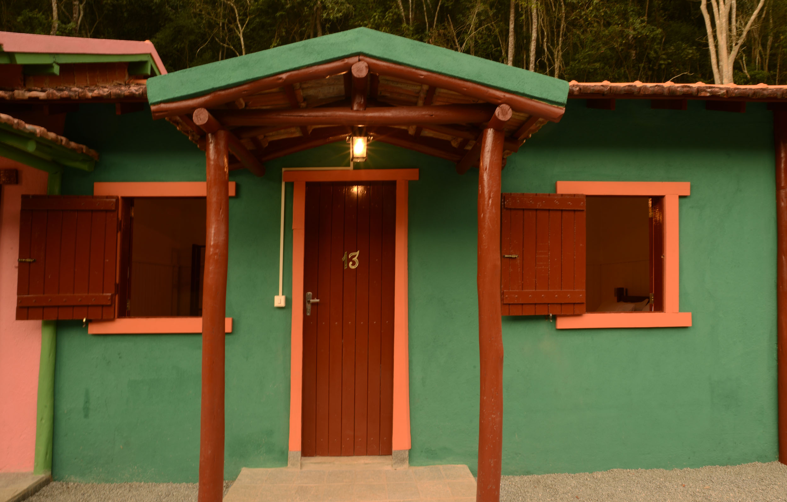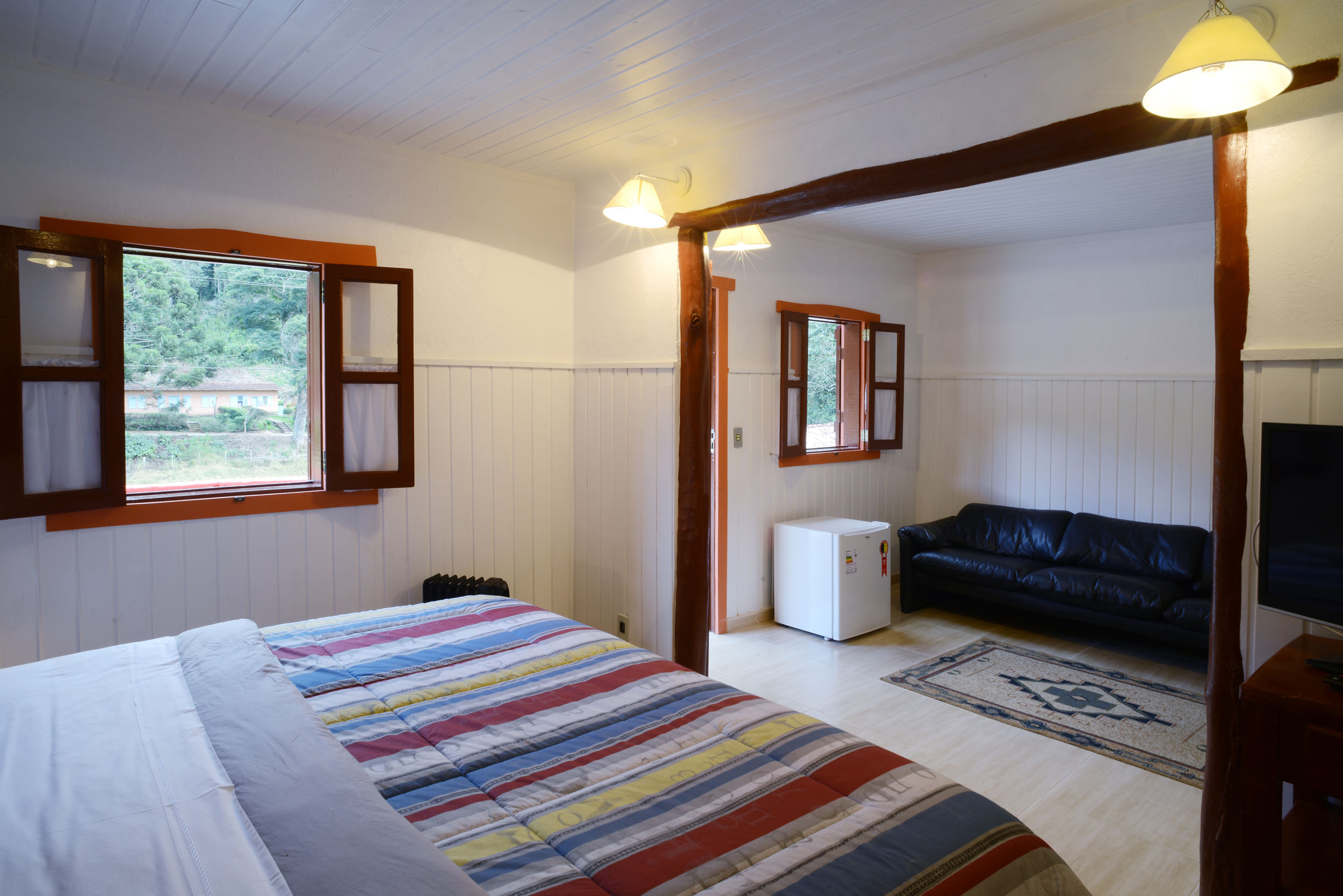 An old cottage was renovated and painted in green, brown and white, in the tradition of the old Brazilian houses. It is spacious and comfortable and offers a king size bed, fridge, TV with SKY satellite service, electric heater and a large sofa. The bathroom is supplied by local spring water, and heated with electric boiler.