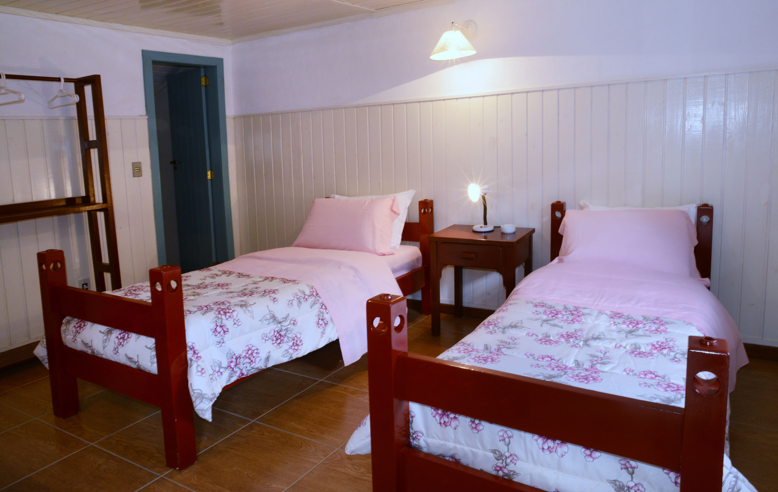 Antiga casa de colono foi transformada em três chalés, separados e independentes um dos outros, numerados 7, 8 e 9, ideais para quem quer aproveitar os bons momentos junto à natureza. Muito aconchegante, com duas camas de solteiro de origem familiar. O chalé oferece TV, frigobar e aquecedor de ambiente. O banheiro é abastecido com a água puríssima que nasce na propriedade.