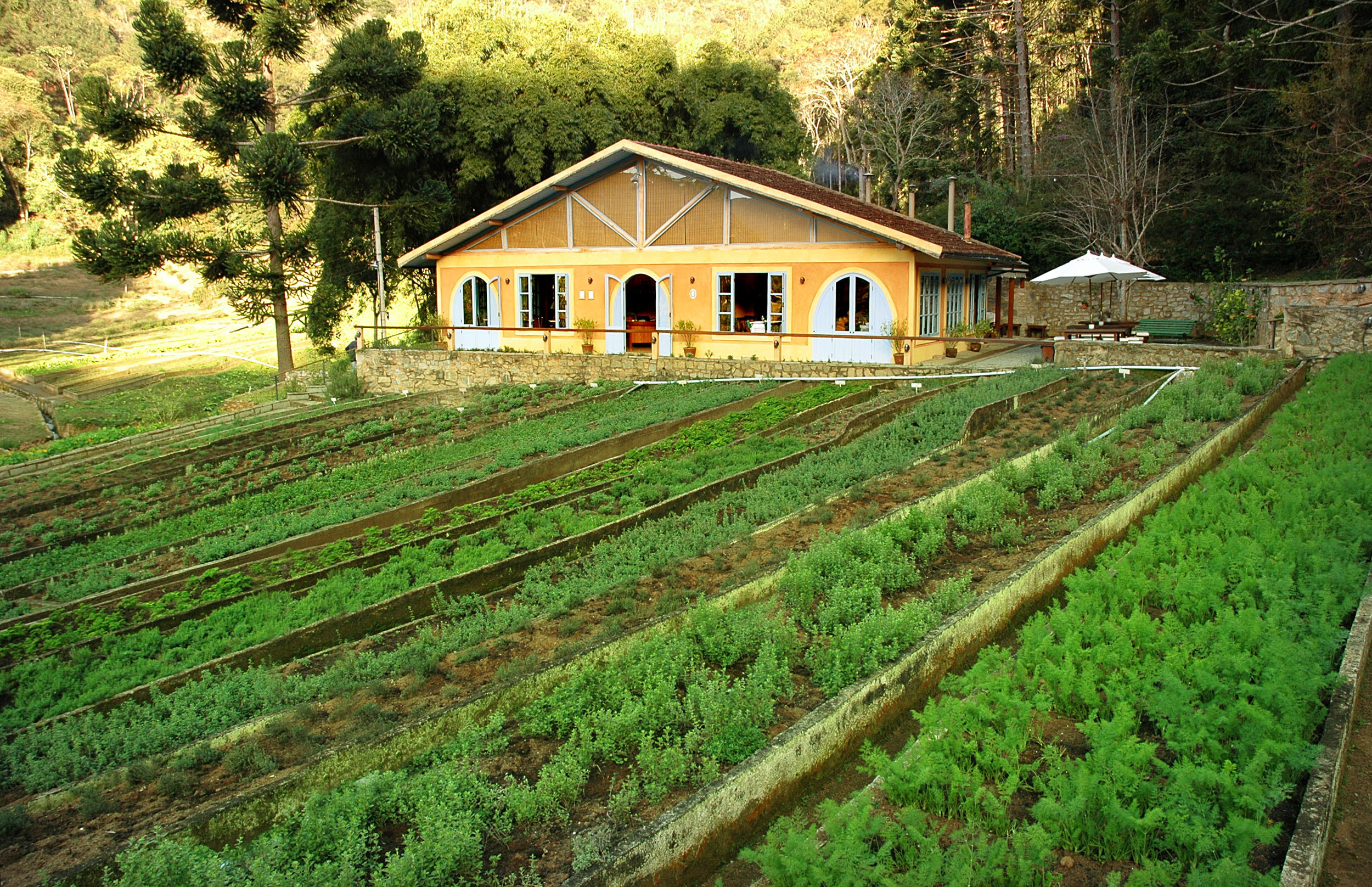 Em estilo provençal, cercado por canteiros onde são cultivadas ervas aromáticas.